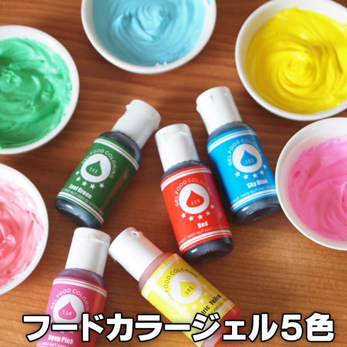 フードカラージェル5色セット 着色料 食用 ジェルタイプ アイシング ケーキ 生クリーム 食紅 お菓子 製菓材料 料理 簡単 ポスト投函 スイーツ バレンタインデー バースデーケーキ