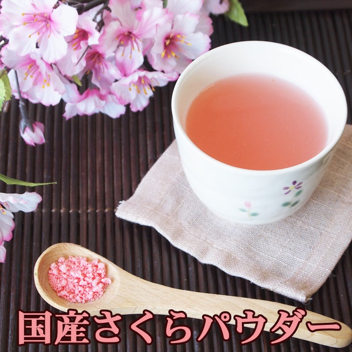 国産の桜花・桜葉を使用したパウダーです。お湯に溶かしてそのまま飲んでも、お菓子やお料理の色付けにつけてもOKです。