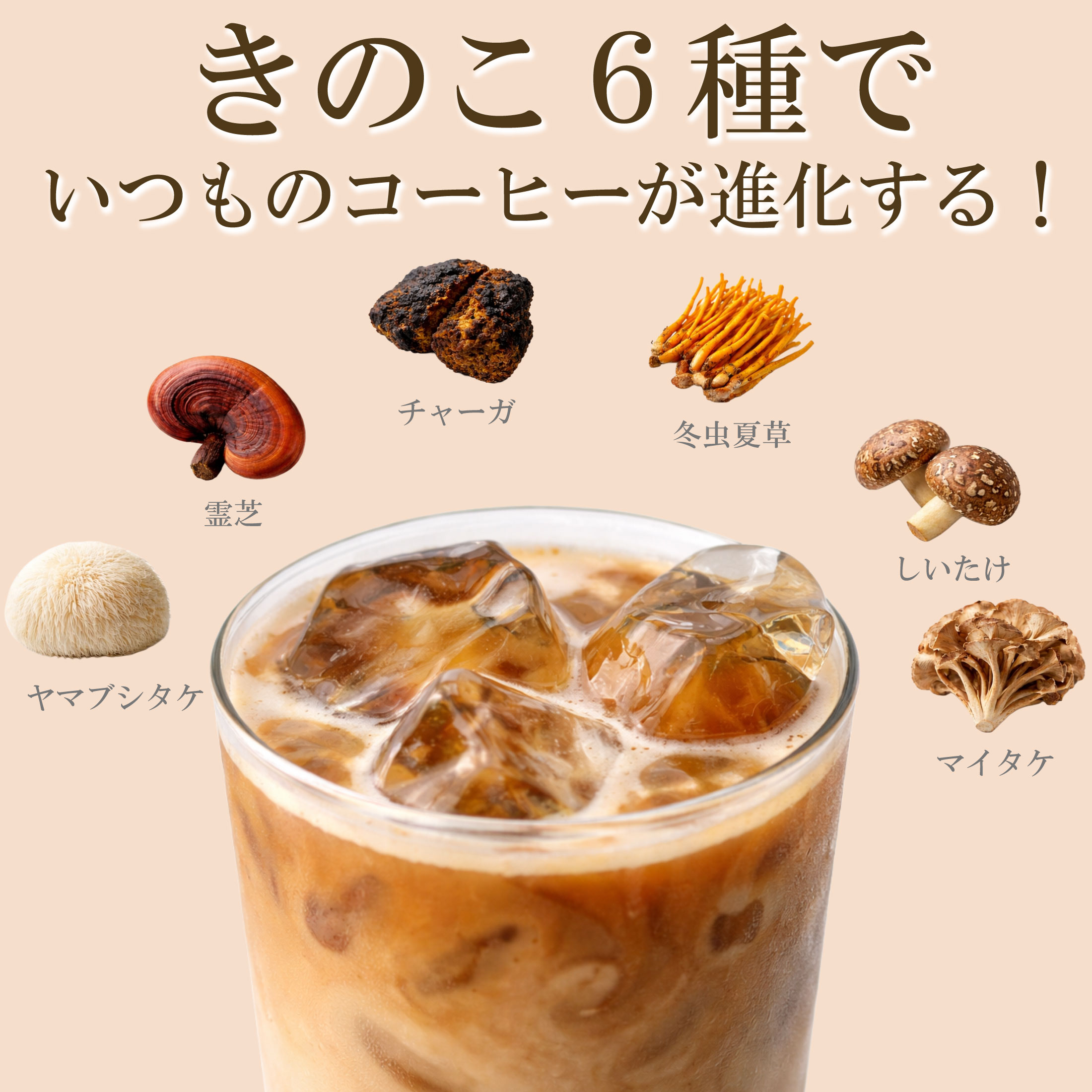 マッシュルームコーヒー アダプトラテ 6種きのこブレンド 100g(約50杯分)コーヒー粉末 トリゴネリン βグルカン
