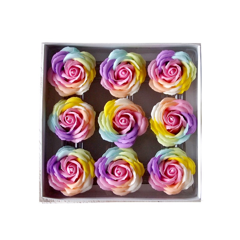 ソープフラワー ローズ レインボー(大) 9個 材料 花材 造花 シャボンフラワー レインボーローズ パステルローズ