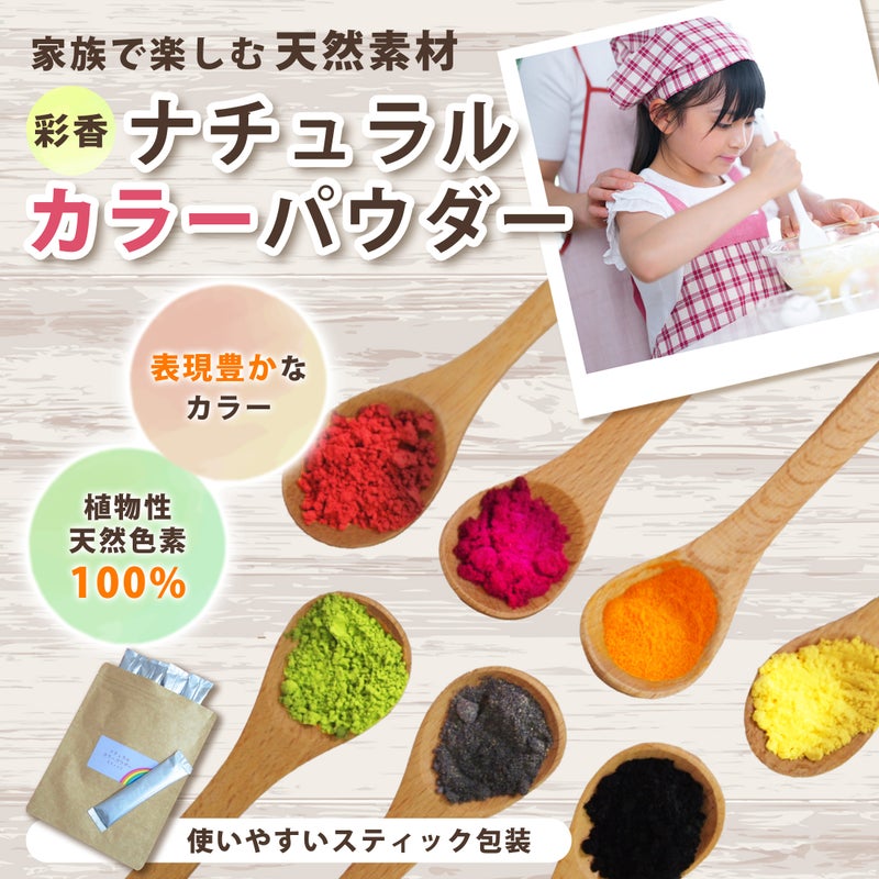 ナチュラルカラーパウダー 粉末食用色素 7色セット スティック 赤 紫 黄 橙 青 緑 天然着色料 ハロウィン 菓子