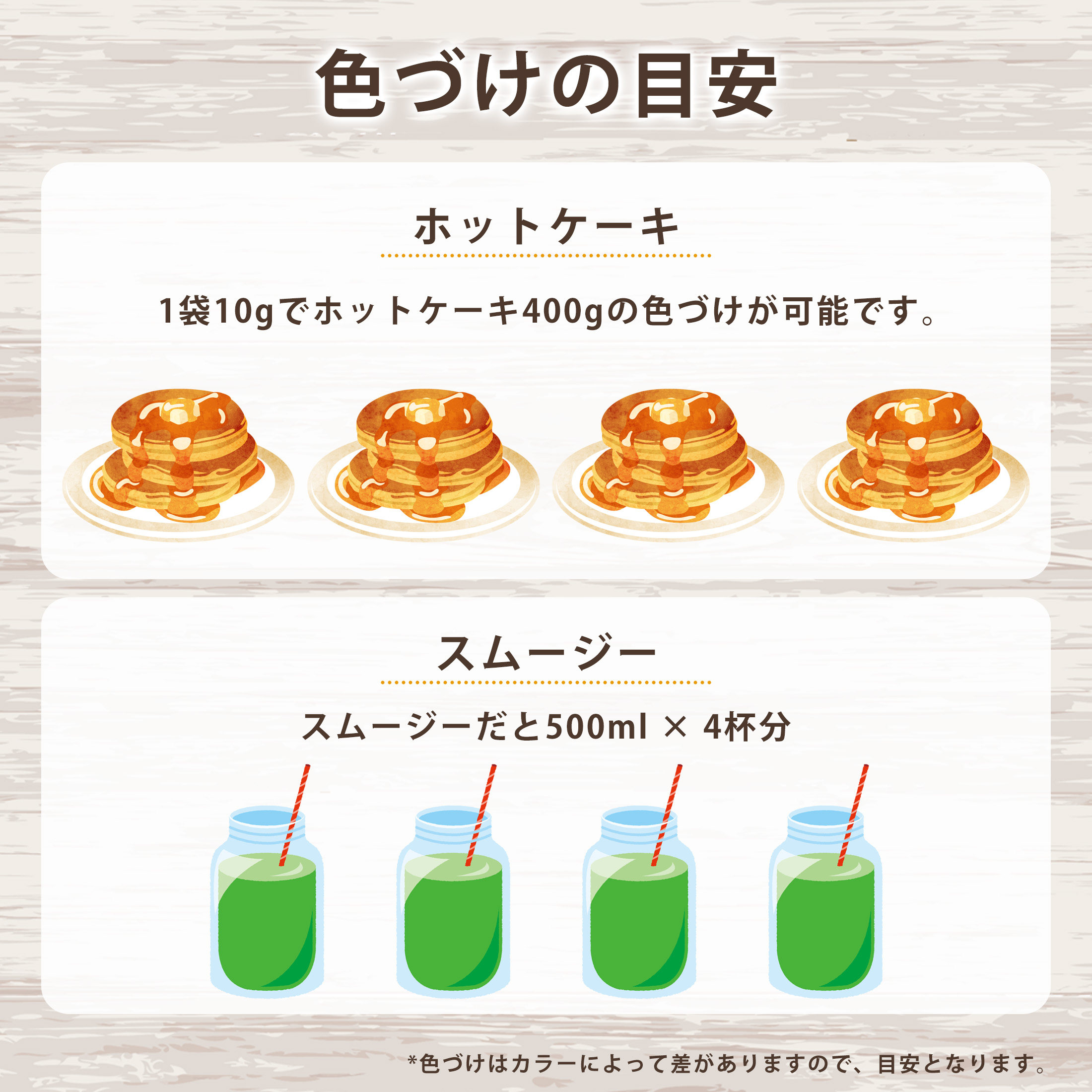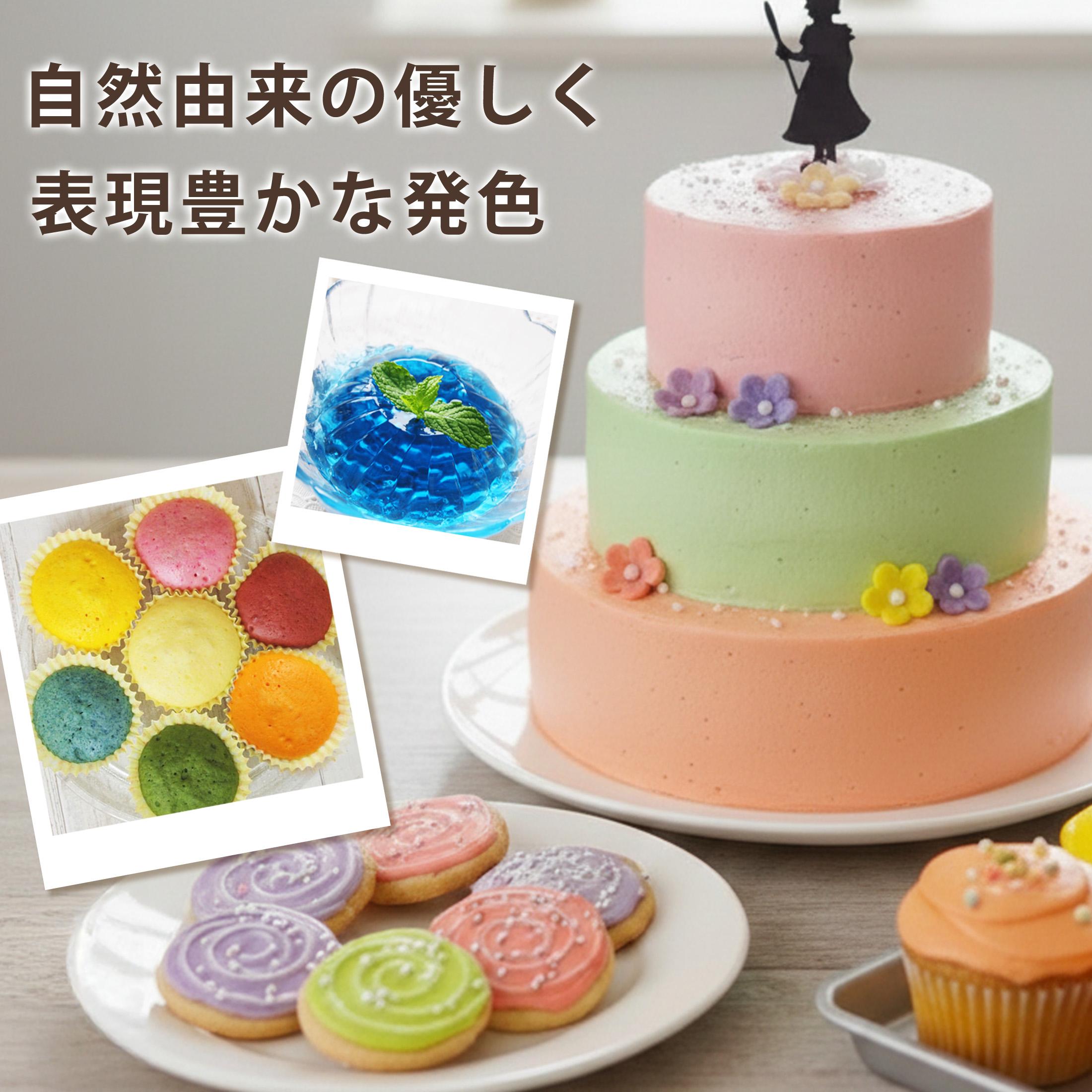 お子様の色水遊び、バスボム作り、カクテル、スムージー、ケーキ、クッキーなどのドリンクや食材の色づけにお使いください。遠足・運動会・ハロウィン・クリスマス・バレンタインデーやお誕生日などのイベントのお弁当やお菓子作りに。