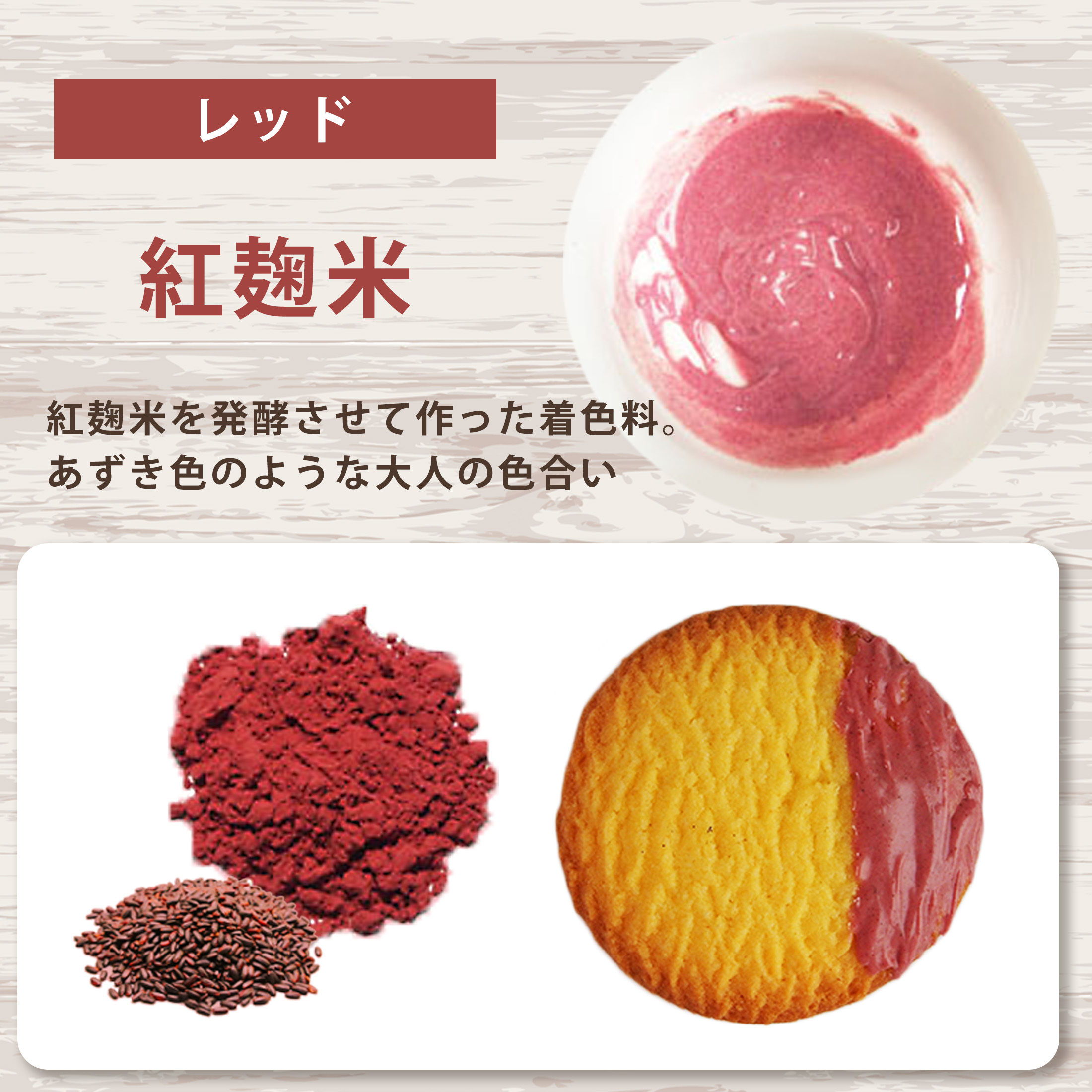 紅麹(レッド)につきまして 弊社の商品に使用している「紅麹」は、小林製薬(株)製造のものとは異なります。また、品質においてカビ毒が発生しない品種の紅麹を使用しておりますので、どうぞご安心ください。