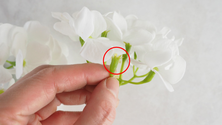 お花のガクの部分が接着されていない場合は、ガクの部分を押し上げる事で調節が可能です。