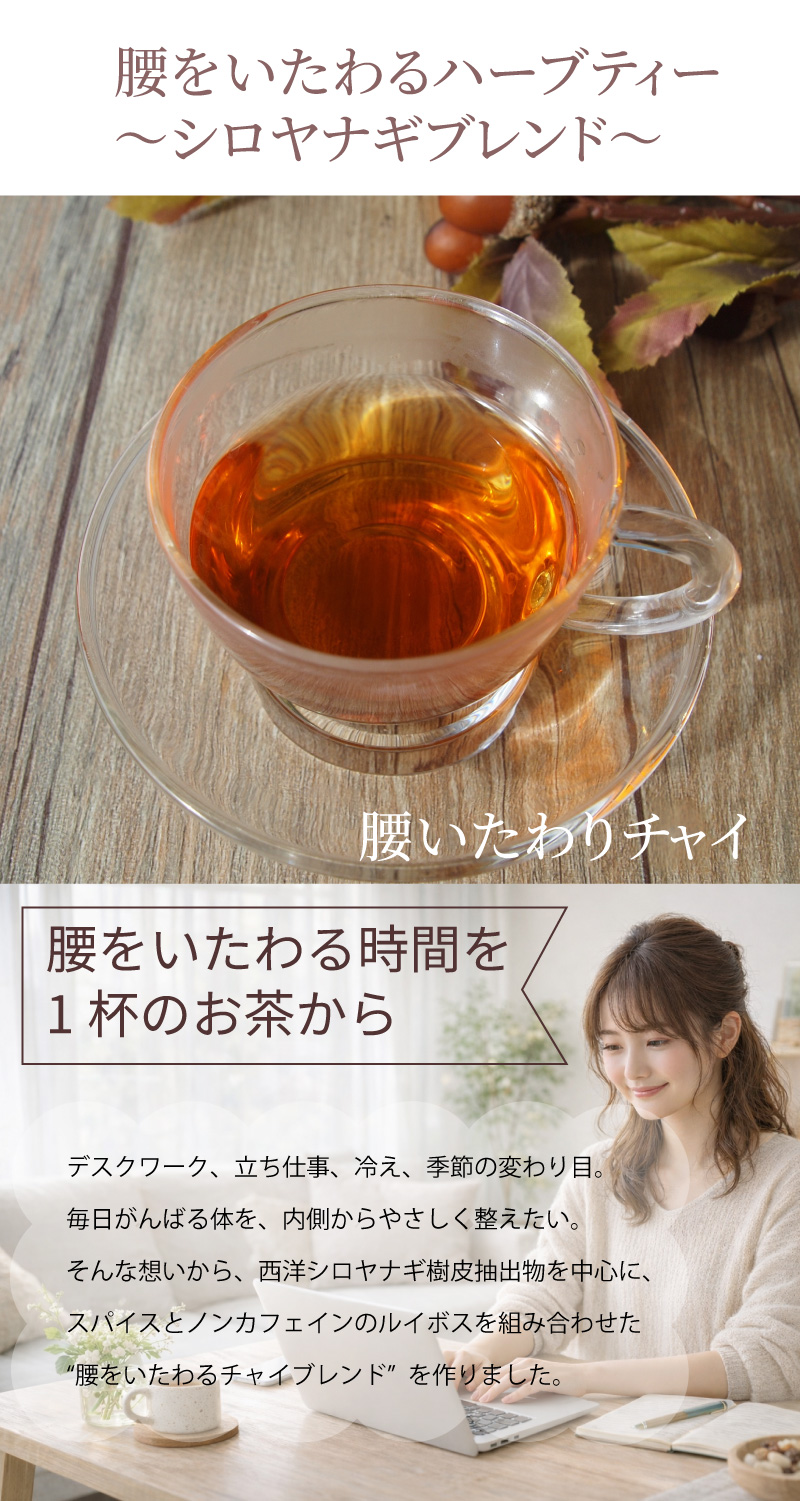 腰をいたわるハーブティー腰いたわりチャイ20包 シロヤナギブレンド スパイス ティーバック ルイボスチャイ インド紅茶
